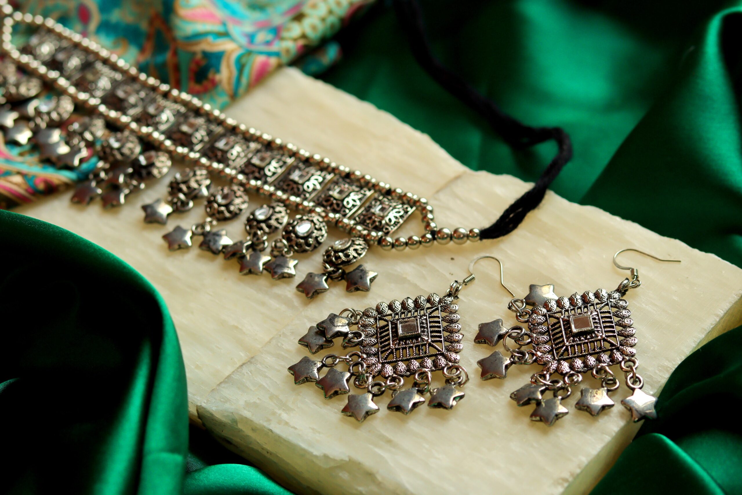 Be the first to review “Silver oxidised choker with earrings”